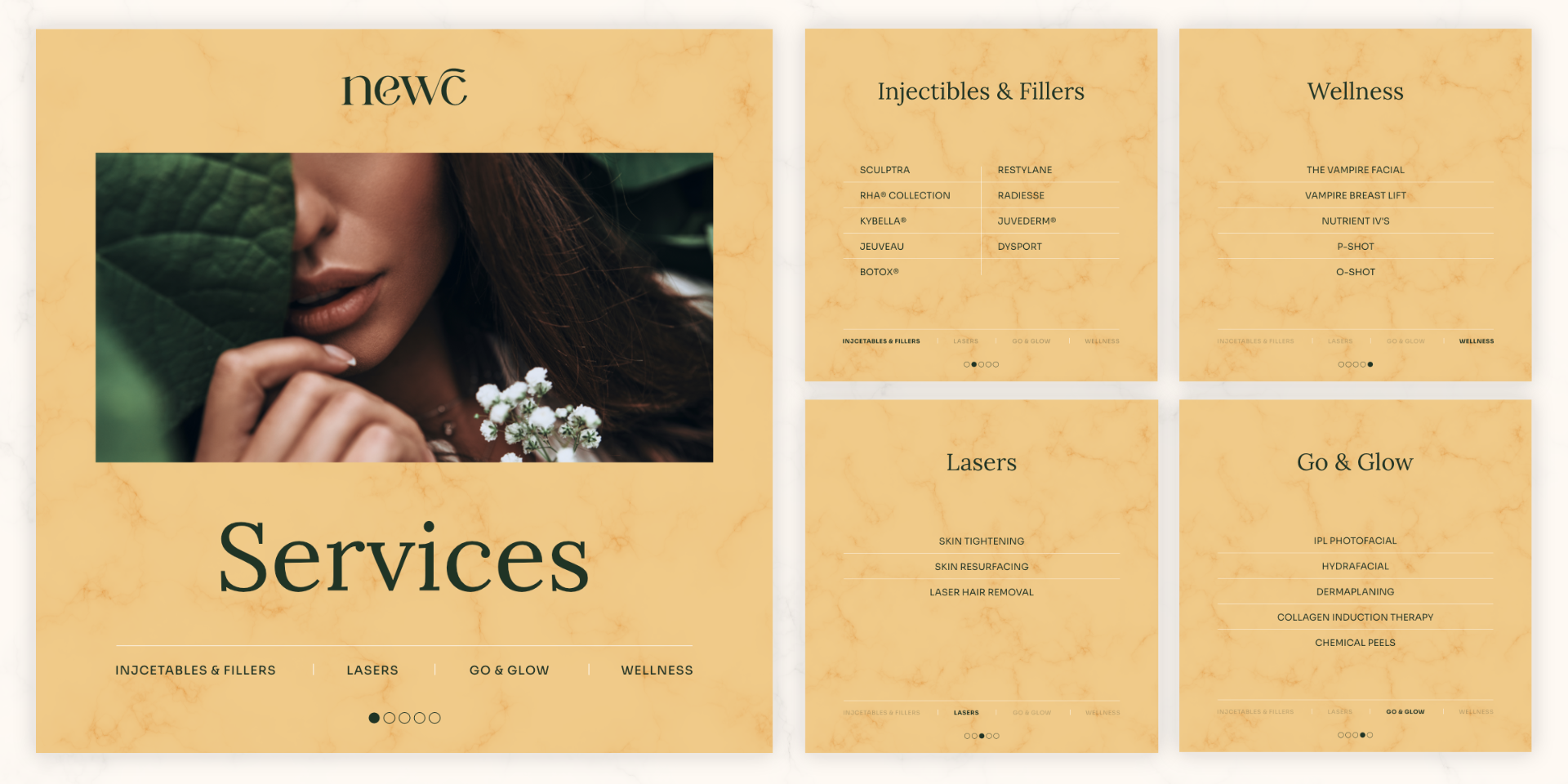 The right combination of typography and colors has a significant impact on how people perceive a brand, and this was no different for NEWC. We selected Lora and Sora as the brand fonts. Lora’s elegant, timeless feel paired perfectly with Sora’s modern and approachable design, creating a balance that reflects the clinic’s blend of medical professionalism and beauty.